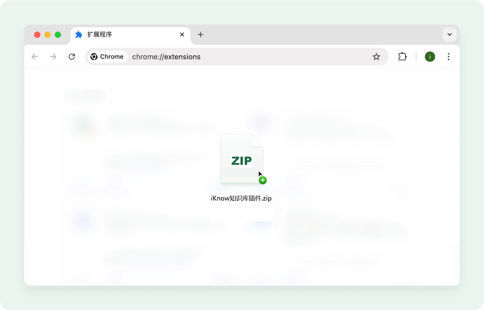 第三步:找到下载的「iKnow知识库插件.zip」文件,将其拖动到扩展程序页面以完成安装。
